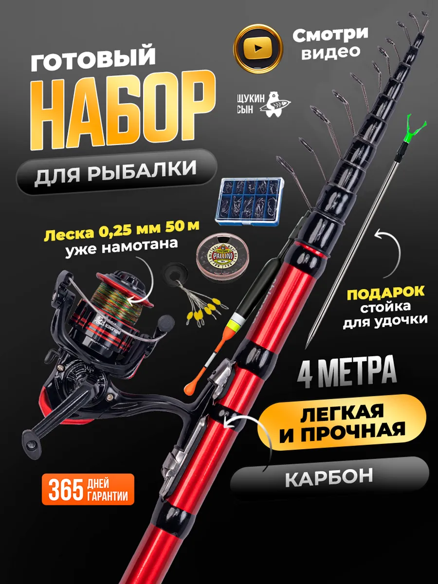 Удочка в сборе для рыбалки оснащенная, 4 метра в длину,... [...]
