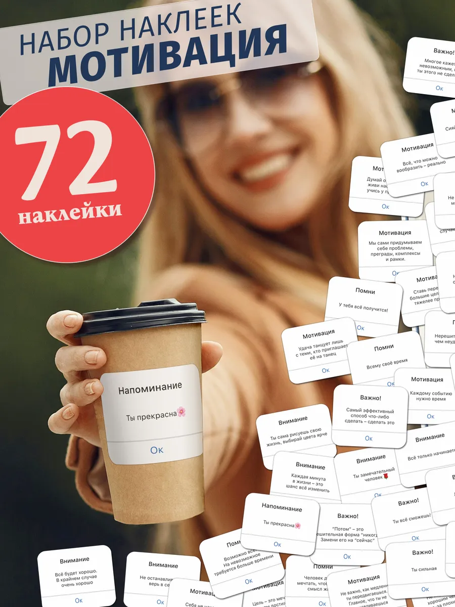 Набор наклеек на стаканы с мотивирующими надписями и... [...]
