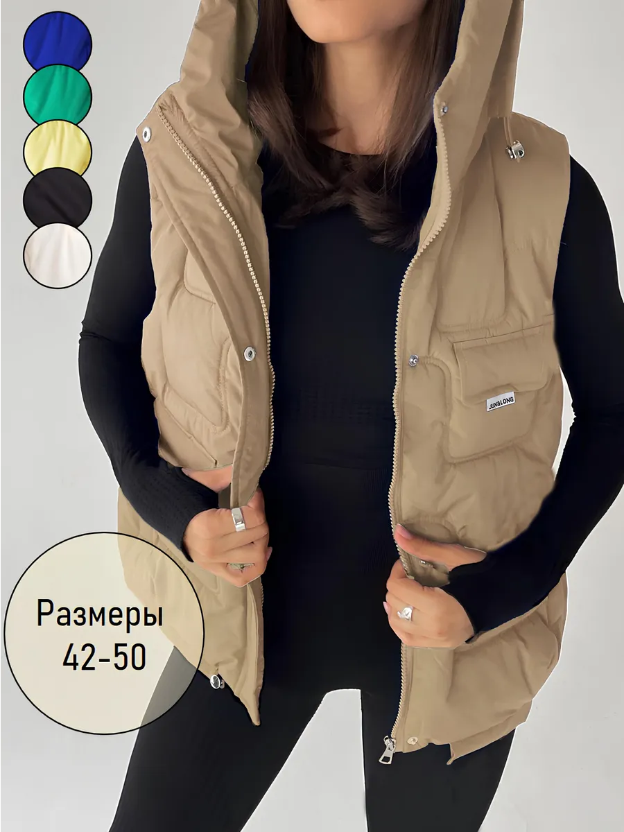 Утепленная жилетка женская с капюшоном и карманами,... [...]