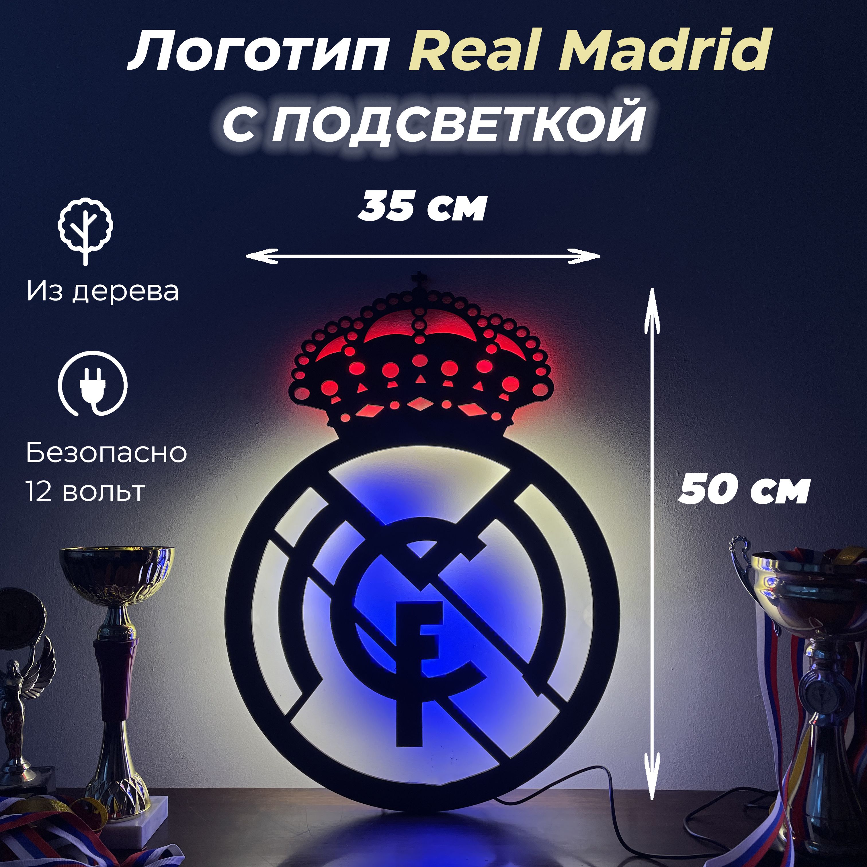 Ночник Реал Мадрид - это идеальное дополнение для спальни, детской комнаты или любого другого помещения. Превратите обычную ночь в увлекательную игру с этим декоративным и стильным товаром.• Оригинальный дизайн: ночник Реал Мадрид в виде клубного герба приносит настоящий футбольный дух в вашу комнату. Будьте готовы к появлению новых звезд на футбольном небосклоне и поддерживайте свою любовь к любимой команде.• Яркий свет: эта лампа работает на светодиодах, которые являются энергосберегающими и долговечными. Они создают мягкий и приятный свет, идеально подходящий для создания уютной атмосферы в комнате.• Беспроводное применение: встроенная аккумуляторная батарея позволяет использовать ночник в любом месте без необходимости подключения к розетке. Это удобно для путешествий или использования в детской комнате, где нет удобного доступа к розетке.• Легкий в использовании: ночник оснащен сенсорным управлением, что облегчает включение и выключение. Просто коснитесь лампы, чтобы изменить настройки света и наслаждаться ярким освещением.Не упустите возможность порадовать себя, своего ребенка или вашего любимого футбольного фаната этим оригинальным подарком. Ночник Реал Мадрид - это не только функциональный аксессуар, но и способ выразить свою преданность любимой команде.