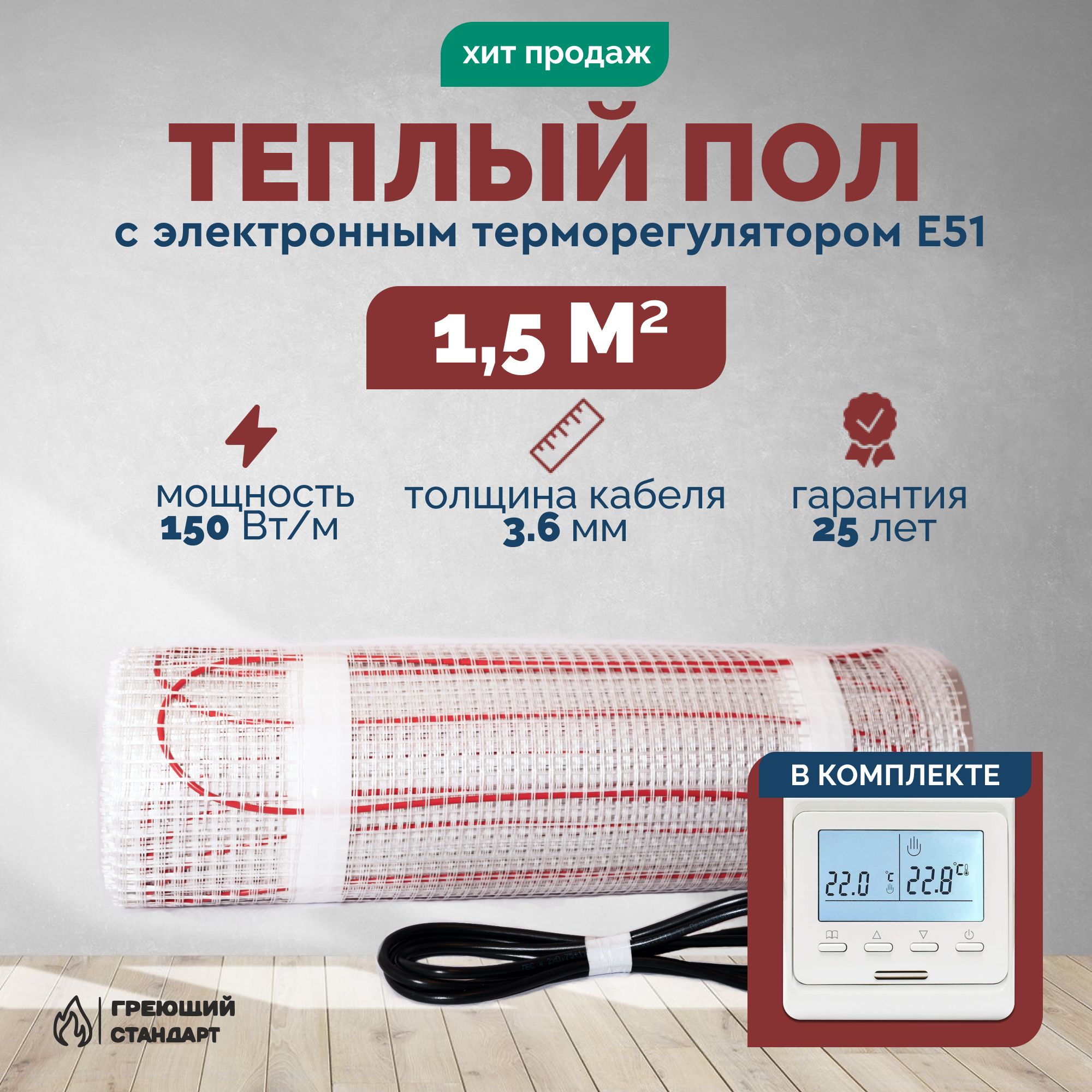 Хотите создать уют и комфорт в своем доме? Тогда электрический теплый пол - идеальное решение для вас! Наш греющий кабель обеспечит равномерное и приятное тепло по всей площади пола. Вы забудете о холодных ногах и сможете наслаждаться теплом даже в самые холодные зимние дни. Теплый пол под плитку - это не только комфорт, но и практичность. Наш теплый пол под плитку обеспечит идеальную температуру для вашего пола, что позволит вам наслаждаться его красотой и долговечностью. Наши электрические теплые полы - это надежность и безопасность. Мы используем только качественные материалы и современные технологии, чтобы обеспечить долговечность и эффективность нашего продукта. Не откладывайте на потом - обеспечьте себе и своим близким комфорт и тепло с нашим теплым полом. Закажите наш нагревательный кабель прямо сейчас и наслаждайтесь теплыми полами в своем доме!