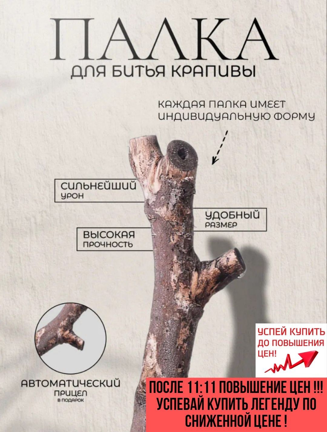 Орудие массового поражения рода цветковых растений семейства Крапивные выполнено из натуральной древесины с уникальны форм-фактором, и обладает несколькими ключевыми характеристиками. Высокая прочность позволяет справиться с ордами соперников в любой ситуации, будь то сражение за баней, в чистом поле или в городской среде за гаражами. Сильнейший урон по стеблям и ботве (травяной) наносит укороченная на конце палки рогатина ни один жгучий шип не коснется руки победоносца. Благодаря точным расчетам дизайнеров, рукоять удобно ляжет в любую ладонь воина от 6 до 65 лет. - Каждая палка индивидуальна, размер разный, в пределах 30-35 см. Вся информация предоставлена продавцом