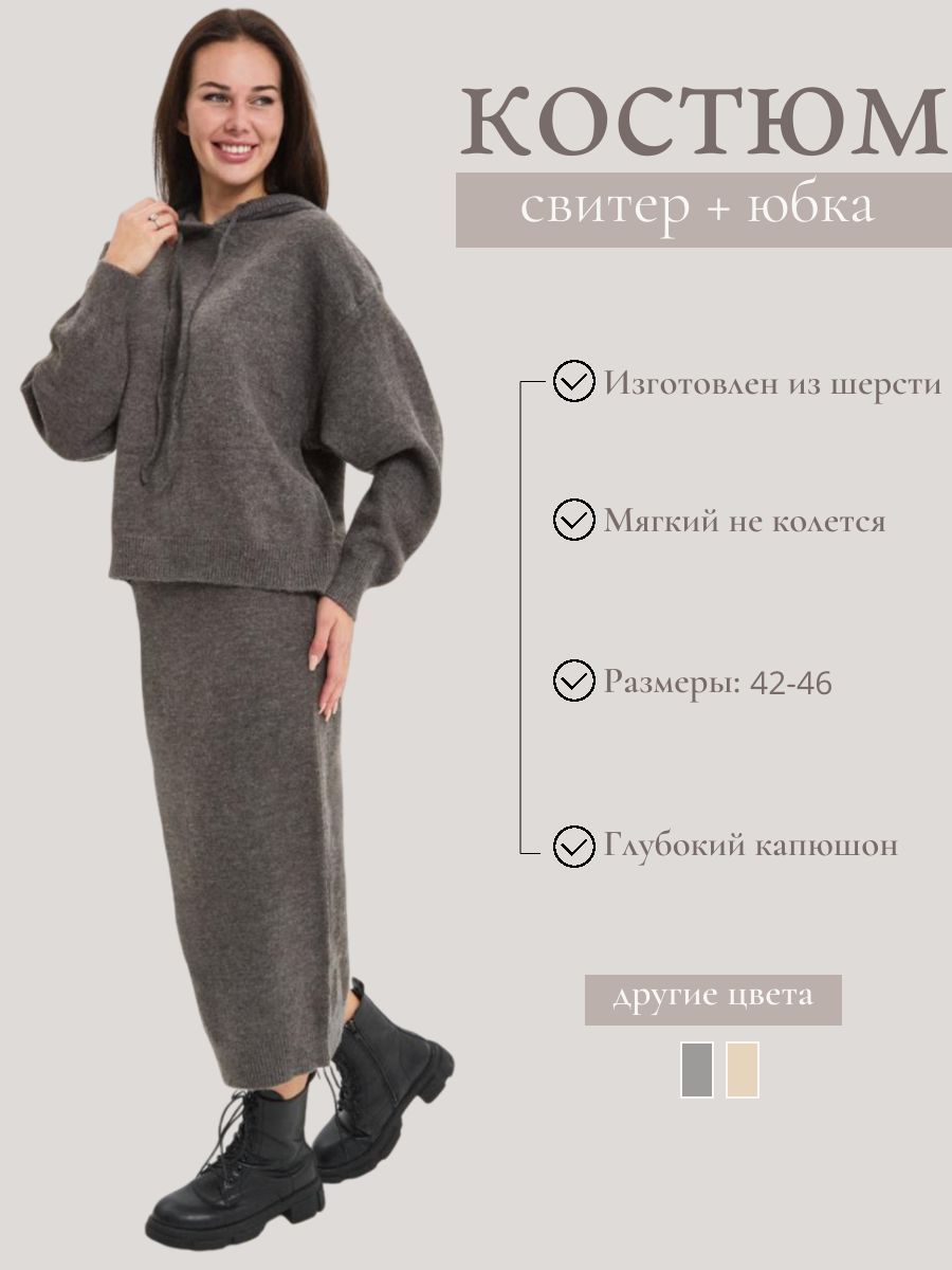 Для наглядности сравнения мы представили и другие теплый костюм женский с юбкой маркетплейса Ozon, лента ниже вращается вправо и влево чтобы посмотреть каждый вариант отдельно, нужно провалиться внутрь, кликните по названию.