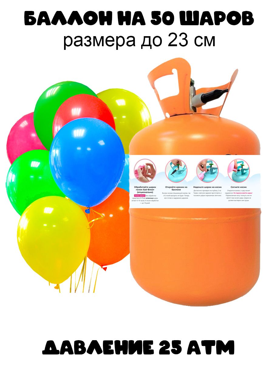 Баллон с гелием для шаров - праздник своими руками не выходя из дома и отличная альтернатива готовым воздушным шарам! Гелий для воздушных шаров позволит Вам надувать шары с гелием - это увлекательный и бесценный опыт! Для дома, для дачи, для офиса - в удобное для Вас время!✎ Мы предусмотрели все! И подготовили для Вас готовый набор для надувания шариков гелием - все для праздника в одной коробке. Шарики воздушные в комплект поставки не входят! Гелий в баллоне позволяет самостоятельного надувать шарики из латекса и надувать шарики игрушка из фольги. Гелиевый баллон сертифицирован и абсолютно безопасен для детей и взрослых. По результатам проведенных испытаний балон с гелием соответствует ТР ТС 032/2013 "О безопасности оборудования, работающего под избыточным давлением". Гелиевые шары которые можно надуть: Латексные воздушные шары с гелием - до 30 шаров 30 см в высоту, больше размер - меньше количество и наоборот; Фольгированные воздушные шары ≈14-16 звезд/сердец; Шары воздушные фигуры ≈3-6 фигур✎ Количество шаров напрямую зависит от их размера. К сожалению мы не можем контролировать качество и размер надутых Вами шаров, поэтому результат у всех будет разный. Для подачи гелия необходимо повернуть вентиль против часовой стрелки и наклонить черную часть насадки в любую из сторон. Просто повернув вентиль - газ не пойдет! Видео инструкция (в карточке товара) поможет Вам избежать распространенных ошибок у новичков, возникающих при эксплуатации низкоатмосферных портативных баллонов с гелием! Не переживайте, здесь нет ничего сложного и с этим справится даже ребенок. Гелий для воздушных шаров чрезвычайно летучий газ для шариков! Воздушные шары надутые гелием без обработки летают не более 10-12 часов. Средство для обработки воздушных шаров продлит полет от 2х суток до 1 месяца.✎ Балон гелия - б/у, многоразовый. Вы платите только за газ! Состояние и цвет может отличаться от фотографии, основной критерий - исправность и герметичность тары, а не внешний вид! Вес пустого и полного баллона одинаковый - гелий ничего не весит.