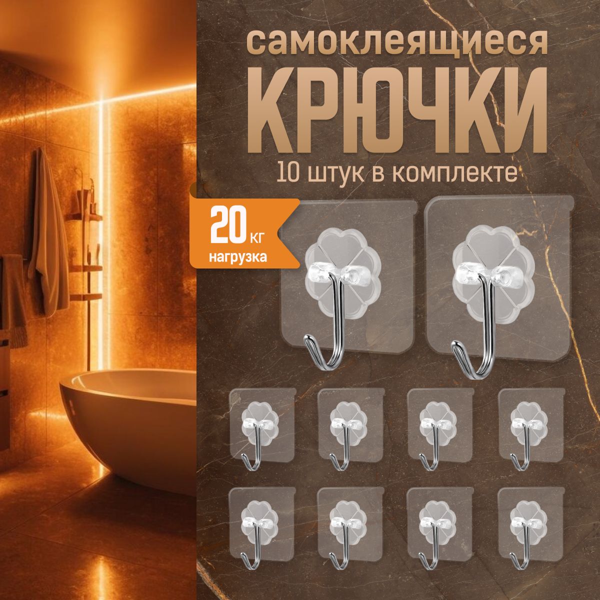 Самоклеющиеся крючки для ванной и кухни будут отличным решением для хранения полотенец, кухонной утвари и любых других вещей в ванной комнате на кухне, в качестве вешалки или органайзера в гардеробе для одежды, на даче или даже в спальне. Так же подходят для крепления гирлянд для украшения помещений к Новому Году и праздникам! Эти прозрачные крючки изготовлены из композитного силикона, а сами крючки из нержавеющей стали. Благодаря усиленной клеевой основе, крючки надёжно крепятся к различным материалам, таким как плитка, металл, пластик, стекло или дерево, и способны выдерживать нагрузки до 7кг.Однако, стоит учесть, что поверхность для приклеивания должна быть ровной и обезжиренной. Эти крючки не подходят для неровных или окрашенных стен из-за маленького пятна контакта с клеевой основой. Также не рекомендуется использовать их на бумажных обоях.Состав клея, используемого в этих самоклеящихся крючках, устойчив к влаге и различным перепадам температур, что делает их идеальными для использования в ванной комнате и душевой кабине. Благодаря специальной форме, эти крючки легко демонтируются после использования, что дает возможность применения их снова. Просто промойте липкую прозрачную часть под струей воды и высушите.Важно следовать инструкции по применению: тщательно очистите и обезжирьте спиртовым раствором зону крепления крючка. После этого протрите поверхность насухо. Отделите защитный слой, прикрепите крючок к поверхности, плотно прижмите и аккуратно выдавите оставшиеся пузырьки воздуха. Оставьте крючок в таком состоянии на 24 часа, чтобы клей "схватился". Все эти действия помогут вам надежно закрепить крючок на стене и в полной мере оценить его качество и функциональность.
