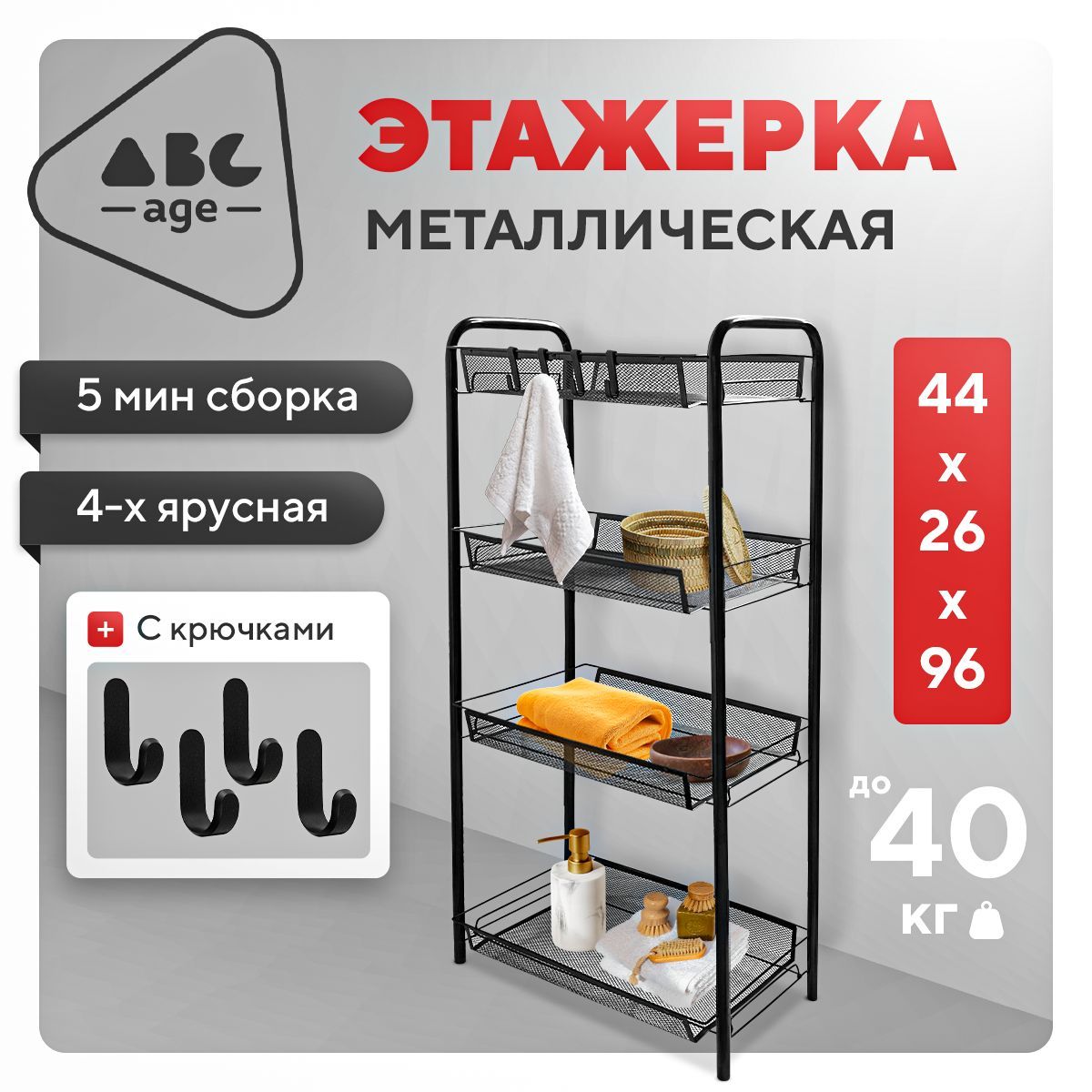 Металлический стеллаж высотой 115 см, шириной 60 см,... [...]