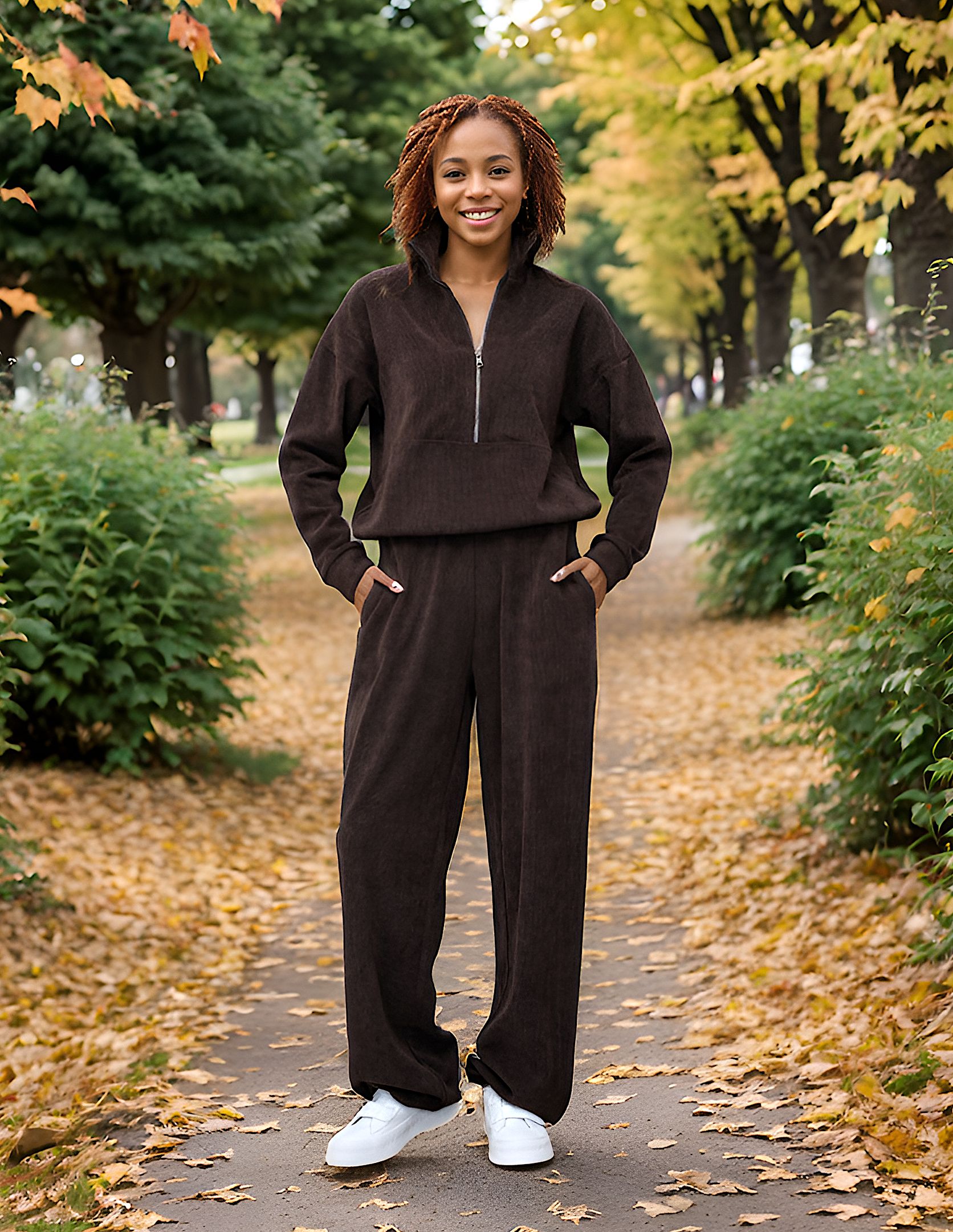 Представляем вашему вниманию современный спортивный женский костюм из вельвета с капюшоном. Этот стильный и удобный комплект идеально подходит для активного отдыха, занятий спортом или повседневной носки. Изготовленный из высококачественного материала, костюм обеспечивает комфорт даже при длительной носке.Основные преимущества этого спортивного костюма включают мягкость ткани и отличную воздухопроницаемость, что делает его идеальным вариантом для любой погоды. Легкий и стильный дизайн позволяет легко комбинировать его с другими элементами гардероба, создавая разнообразные образы. Капюшон добавляет функциональности и защищает от прохладного ветра, а также придаёт костюму современный вид.Спортивный костюм представлен в разных размерах и цветах, что позволяет каждому выбрать подходящий вариант. Удобные карманы и резинка создают дополнительное пространство для хранения необходимых мелочей.Благодаря своему универсальному стилю, костюм подходит как для тренировок, так и для прогулок по городу. Вельветовая текстура придаёт изделию оригинальный вид и делает его комфортным в носке. Не упустите возможность дополнить свой гардероб этим стильным и практичным спортивным костюмом с капюшоном.