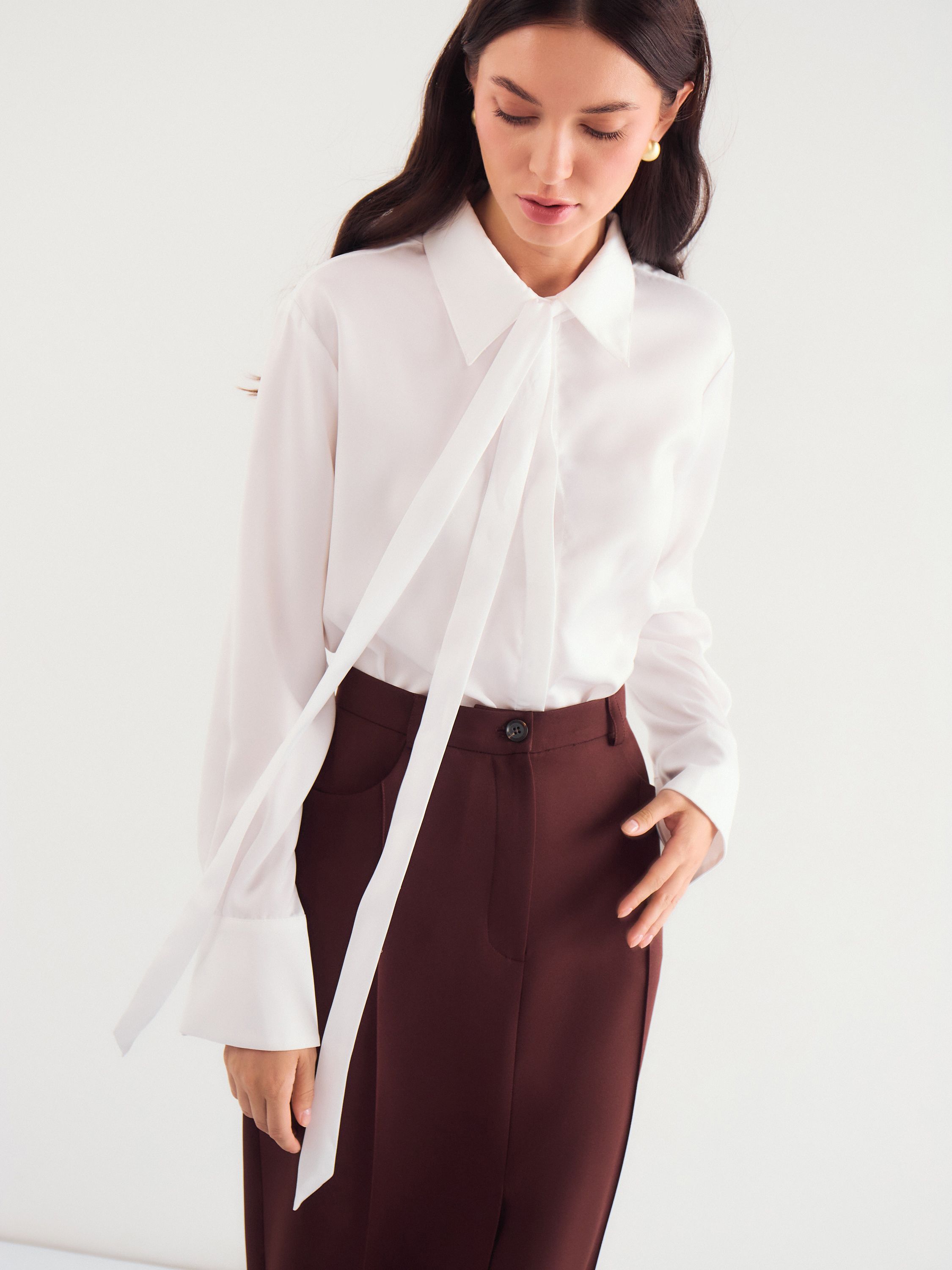 Женская блузка из жатого шелка с бантом на спине — это... [...]