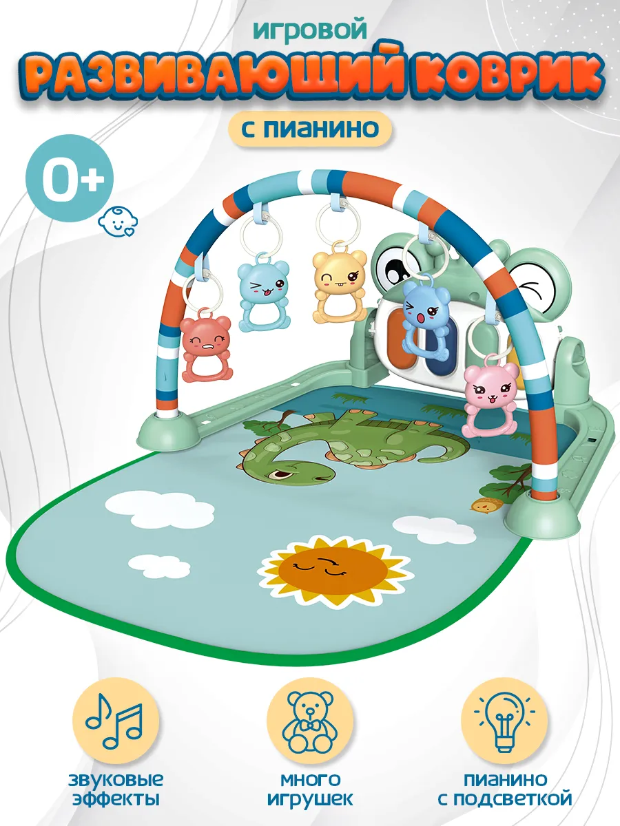 Мягкий и многофункциональный коврик для малышей — идеальное решение для развития и развлечения детей. В комплект входят: 1 дуга для крепления игрушек, 4 игрушки погремушки и музыкальный модуль с проектором. Проекция создаёт мягкое приглушенное освещение в комнате. Детский коврик с пианино создан специально для новорожденных и малышей, стимулируя их развитие и привлекая внимание яркими элементами. Занимательный и функциональный, он оснащен модулем с блютуз, с помощью которого можно управлять с телефона, и развивающими игрушками, которые способствуют развитию моторики и зрительного восприятия. Коврик для новорожденных легко превращается в музыкальный игровой центр с пианино, что добавляет интерактивности и поддерживает интерес ребенка на длительное время. Игровой коврик с игрушками — отличный выбор для родителей, которые хотят создать для своего малыша уютное и развивающее пространство дома. В комплект входит: дуга с игрушками, коврик игровой (64х73см), игрушки-погремушки (средний размер 8,5 см), пластиковый каркас-держатель пианино, пианино (28х19 см), пластиковые болты крепления пианино 2 шт., музыкальный модуль с проекцией. Для работы пианино необходимо 3 батарейки типа АА (в комплект не входят). Для работы проектора необходимо 3 батарейки типа ААА (в комплект не входят).