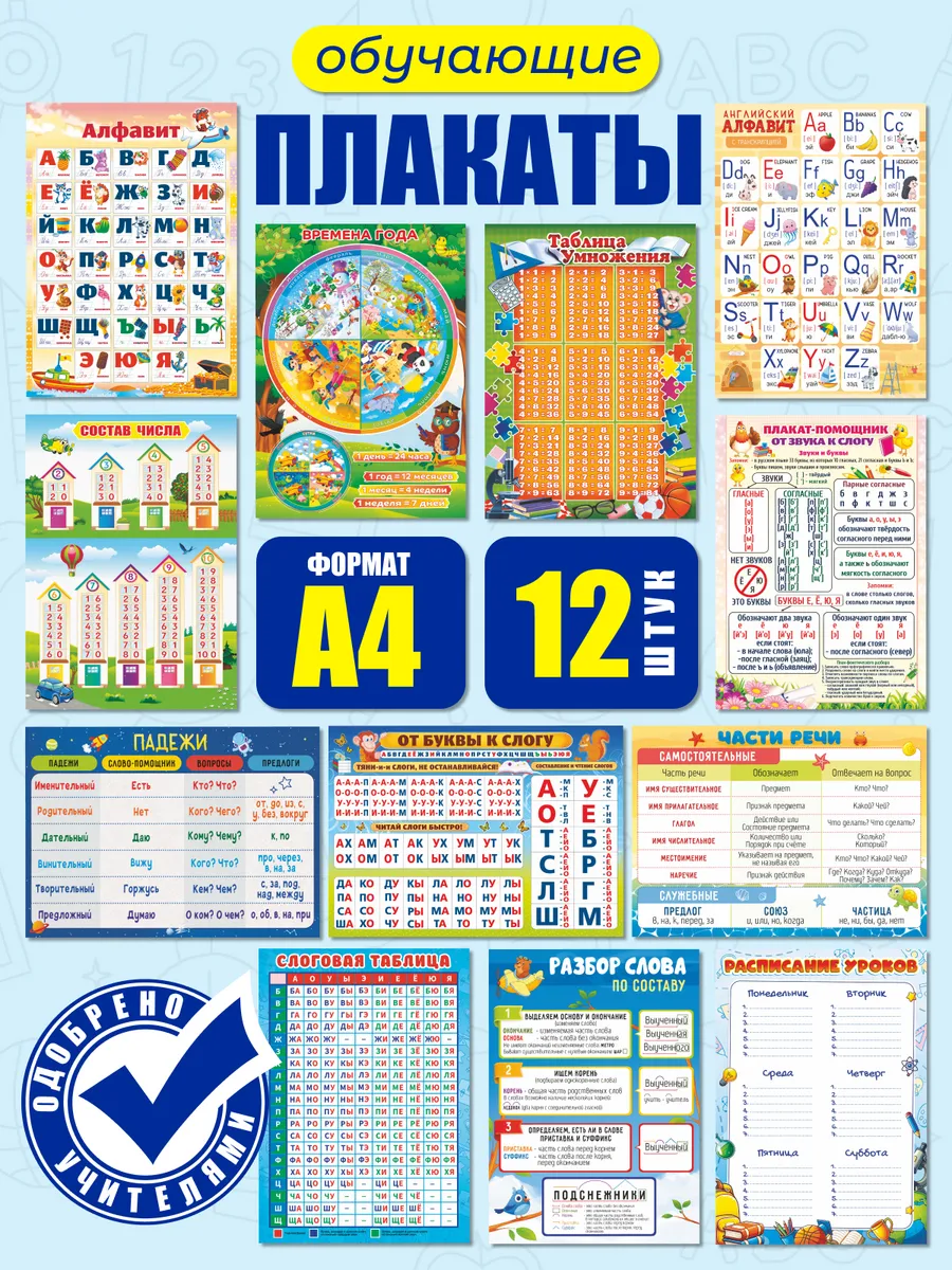 Набор обучающих учебных плакатов А4 10 шт русский... [...]