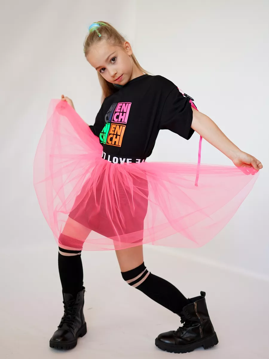 Черное платье-футболка с неоновой розовой юбкой из... [...]