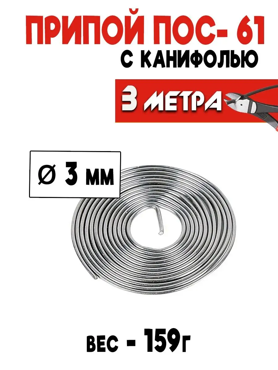 Припой ПОС61 без канифоли 3мм проволока для пайки меди,... [...]