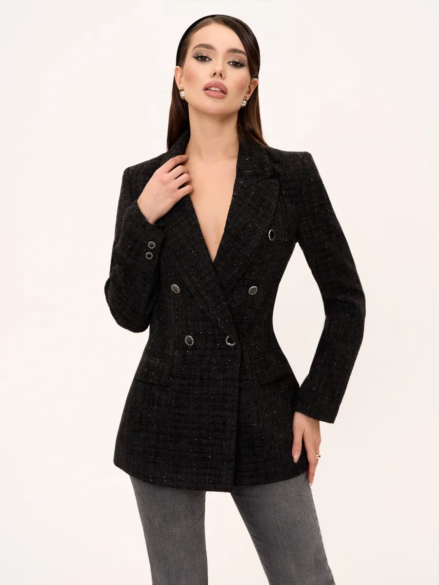 Приталенный двубортный жакет из твида – ключевая... [...]