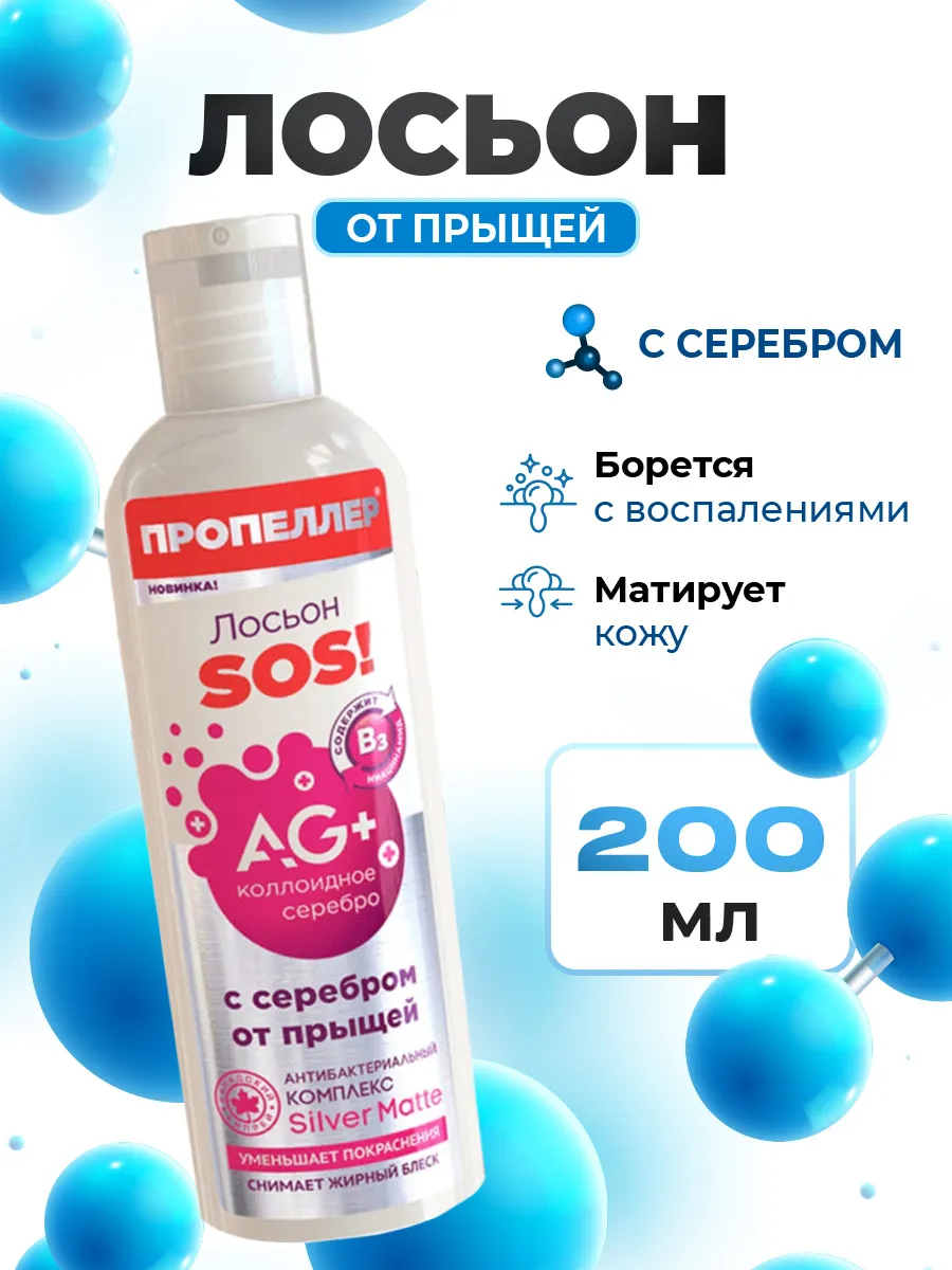 Пропеллер Лосьон SOS! с серебром от прыщей 200мл. Лосьон...