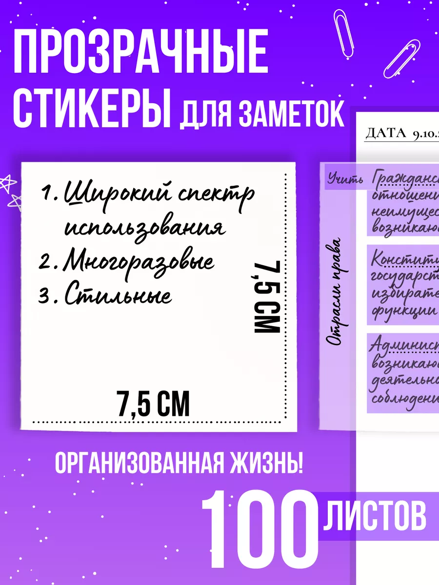 Стикеры для заметок прозрачные 100 штук 9,6 см х 7 см.... [...]