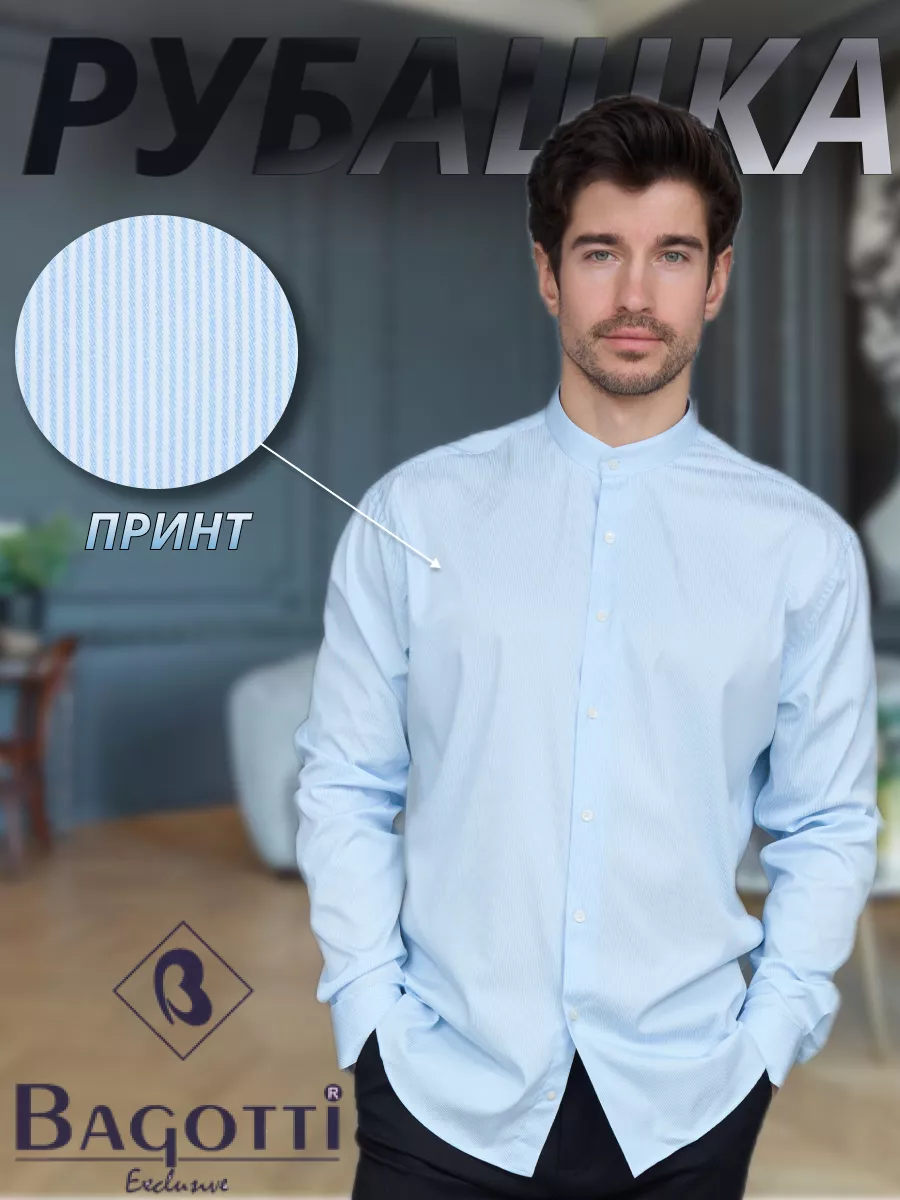 Мужская рубашка без воротника с длинными рукавами:...