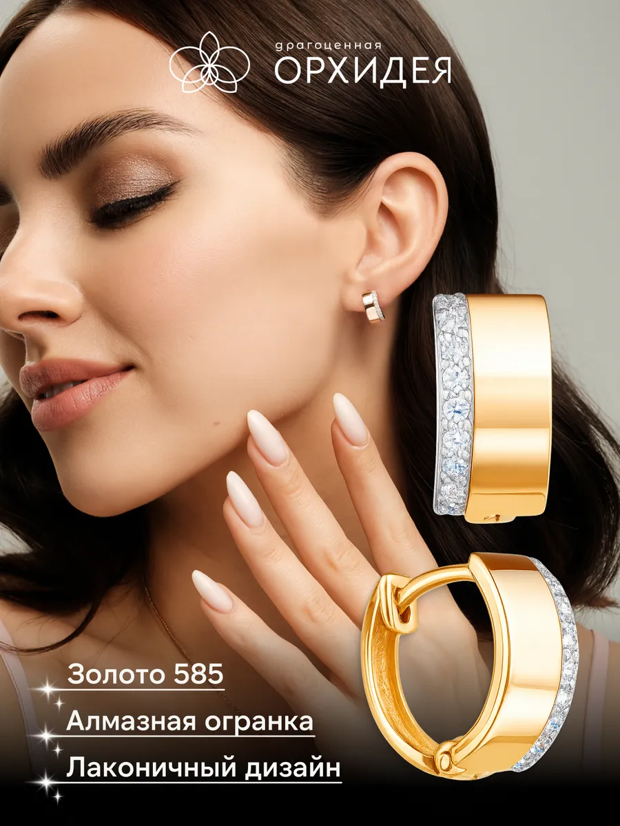 Золотые женские серьги-кольца 585 пробы с алмазной... [...]