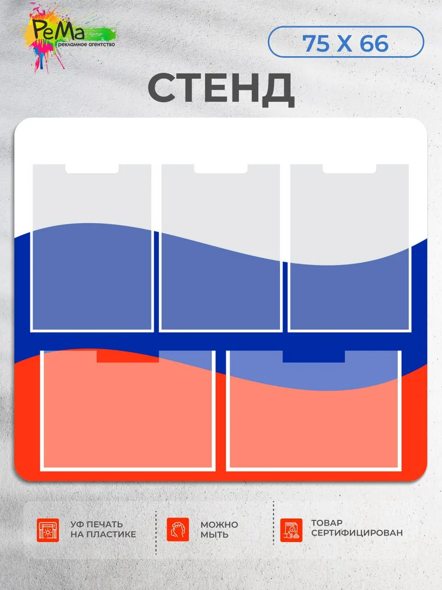 Стенд информационный с 6 плоскими карманами выполнен... [...]
