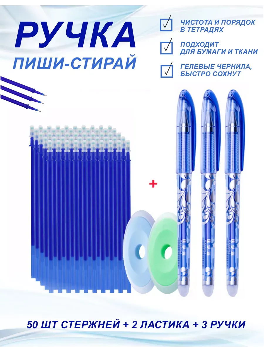 Ручка гелевая синяя пиши стирай, 50 синих стержней,... [...]