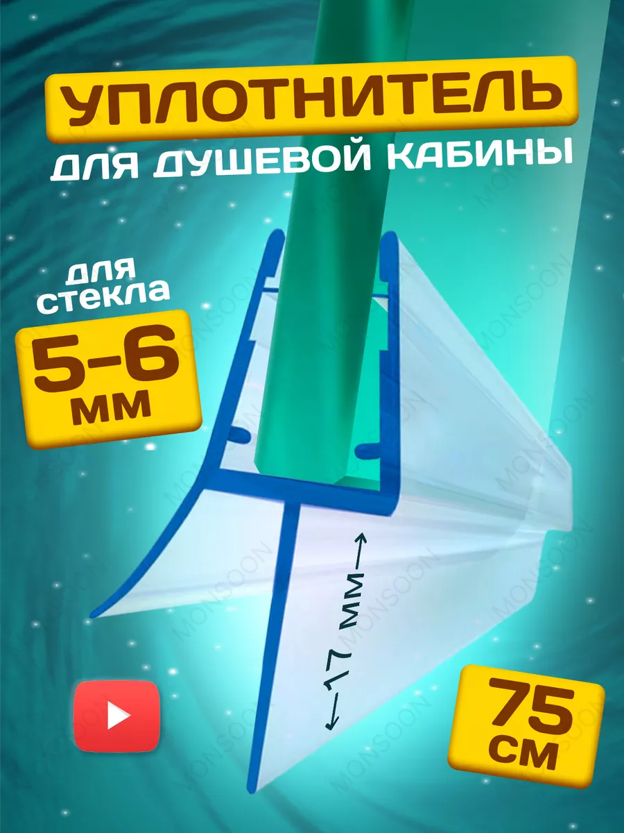 Уплотнитель для душевой кабины под стекло 5-6 мм:... [...]