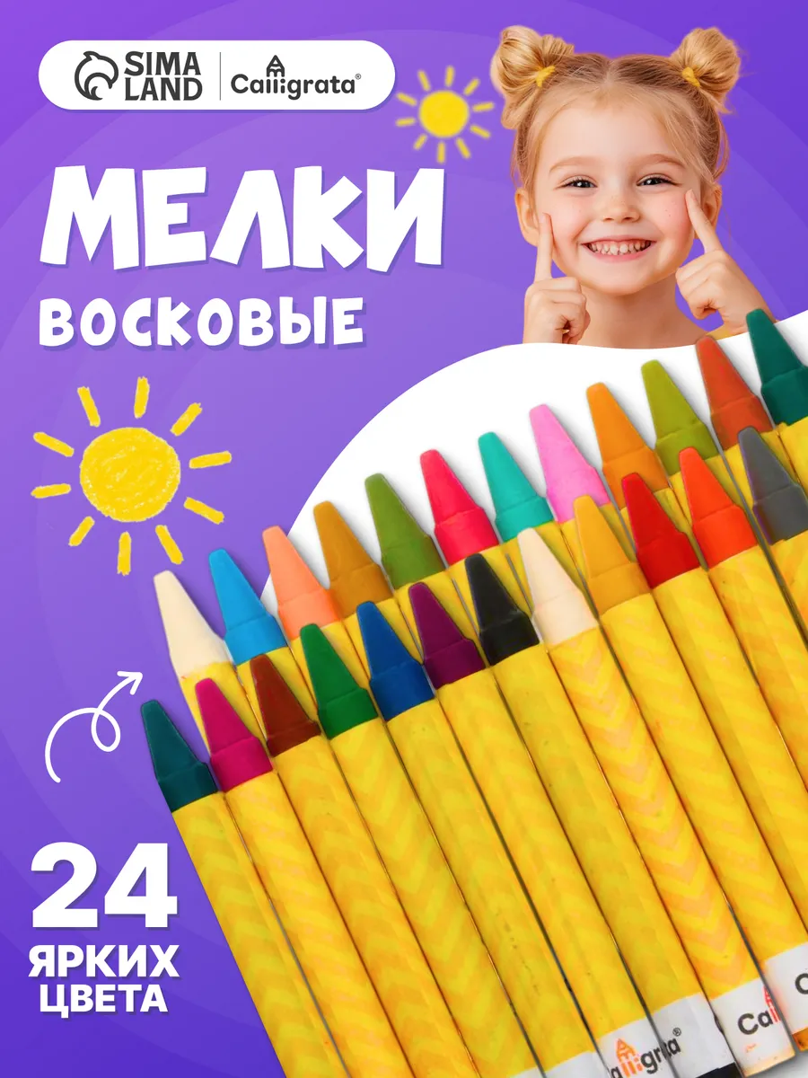 Карандаши восковые 24 цвета, 93 х 8 мм, Calligrata, в картонной...