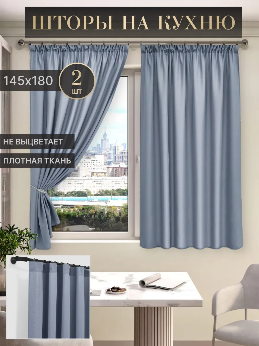 Комплект однотонных штор для кухни из легкой портьеры... [...]